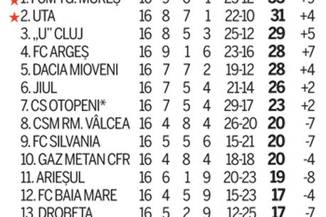 condiții, primele două echipe din clasament, FCM Tg. Mureș și UTA,