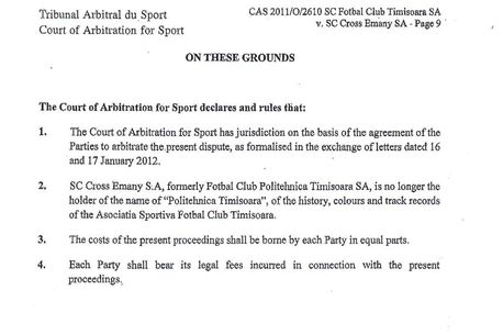 „Dupa patru ani de acțiuni cu temei juridic pentru recuperarea palmaresului și tuturor drepturilor conexe ale fotbalului alb-violet, TAS a decis, conform dispozitivului anexat, că acestea au fost, sunt și vor rămâne la Timisoara!