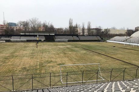 În jurul arenei au crescut numeroase buruieni, iar casele de bilete sunt răvășite. Muncitorii au reușit, pentru început, să scoată la lumină tribunele, iar o altă echipă s-a apucat să lucreze la gazon (foto mai jos). Plasa de sârmă din jurul stadionului le dă bătăi de cap oamenilor angajați de Rapid: „Bă, cum reparăm noi plasa asta?”. Scaunele se află și ele într-o condiție jalnică, dar patronul Victor Angelescu spune că totul va fi gata până la reluarea campionatului.