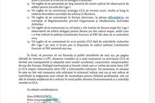 Ultimatumul lui Iorgulescu se încheie în termeni duri: „În final, vă precizez că voi formula și public întrebările de mai sus, pe pagina oficială de internet a LPF, deoarece consider că a sosit momentul ca activitatea CCA să devină una transparentă și adaptată unui model occidental, caracteristic campionatelor de top din Europa. Dialogul instituțional și bunele relații care ar trebui să existe între LPF și CCA impun comunicarea către LPF a informațiilor solicitate. De asemenea, în situația în care nu îmi veți comunica cele solicitate în termenul indicat mai sus și veți refuza să contribuiți la asigurarea unui climat de normalitate pentru fotbalul profesionist, mă voi afla în situația neplăcută de a solicita în mod public demisia Dumneavoastră și a celorlalți membri ai CCA.”