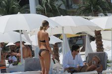 Lucian Becali a fost ceva mai activ, făcând mai multe drumuri la barul aflat în apropiere, pe când partenera sa nu a dorit să facă altceva decât să stea tolănită pe șezlong.