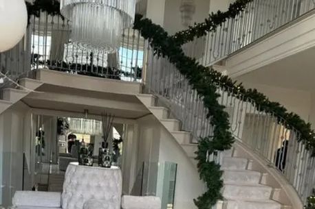 Coleen Rooney a împărtășit mai multe fotografii din interiorul vilei fabuloase în care locuiesc. Una dintre imagini ne arată marele foaier al casei, scara „șerpuitoare” și extrem de generoasă și un candelabru imens. Există, de asemenea, o zonă de relaxare înainte de a pătrunde în ceea ce pare a fi camera de zi.