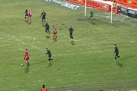 Valente a deschis scorul pentru Gaz Metan Mediaș, pe un teren eliberat de zăpadă de către suporterii lui Dinamo, care au venit la stadion pentru a ajuta echipa.