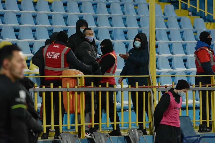 Imediat după, managerul roș-albaștrilor a fost înconjurat de oamenii de ordine, care au încercat să detensioneze atmosfera.