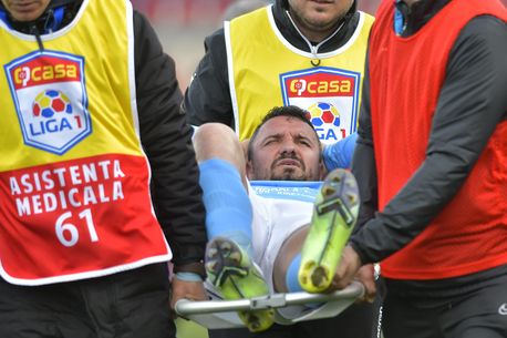 Constantin Budescu a suferit o ruptură de tendon în prima repriză a meciului FC Voluntari – Farul Constanța și a fost scos de pe teren pe targă, deoarece nu putea călca pe picior.