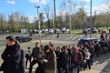 Coada la care stau oamenii care doresc să-i aducă un omagiu lui Mircea Lucescu se întinde pe zeci de metri, trecând dincolo de porțile stadionului.
