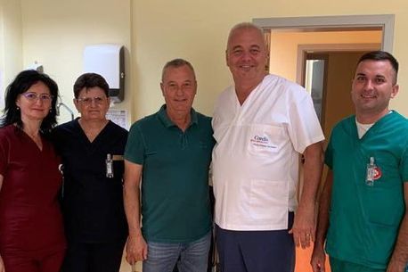 Antrenorul „Bătrânei Doamne” se simte bine, dovadă stând pozele făcute la ieșirea din spital alături de echipa doctorului Cristian Dină, cel care i-a montat trei stenturi miercuri, la două zile după infarctul miocardic suferit în prima repriză a meciului cu FCSB. Partidă în care „roș-albii” s-au impus cu 2-1 în fața vicecampioanei, producând una dintre marile surprize ale startului de sezon.