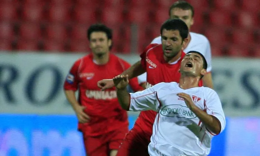 Bogdan Apostu, într-un meci jucat împotriva lui Dinamo pe vremea când era la UTA, echipă antrenată acum de Mircea Rednic