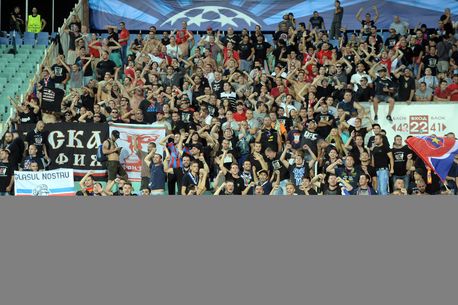 UEFA a pedepsit Steaua acum un an pentru anumite scandări ale suporterilor români care s-au deplasat la Sofia. Dar în galeria stelistă au existat atunci și fani ai echipei ȚSKA Sofia. Apoi, după meciul retur cu Dinamo Kiev, forul european a mai dictat o sancțiune Stelei FOTO: Alexandru Hojda