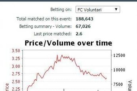 După ce arbitrul a fluierat startul partidei, cota pentru o victorie a Voluntariului a continuat să scadă la Pinnacle timp de o jumătate de oră, ajungând până la 2,26, asta deși prima repriză a fost una anostă, fără mari ocazii de gol.