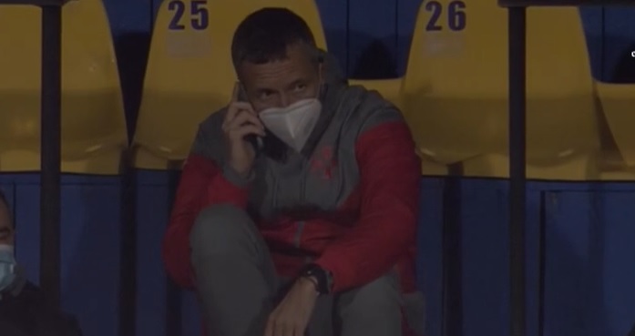 Înainte ca arbitrul să trimită echipele în pauză la cabine, MM Stoica a fost filmat cu telefonul la ureche. Data trecută, când managerul general al roș-albaștrilor a vorbit la telefon, FCSB a schimbat patru jucători, în minutul 28 al partidei de la Iași.