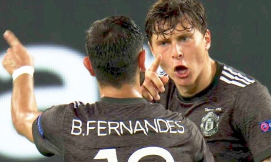 Portughezul Bruno Fernandes i-a reproșat lui Victor Lindelöf că și-a scăpat omul din marcaj. Fundașul suedez a ripostat rapid: a urlat la colegul și l-a insultat în limba portugheză.