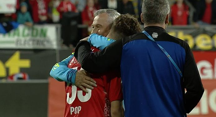 La finalul partidei, Rareș Pop a revenit alături de colegi și a primit îmbrățișări de la coechipieri, dar și de la antrenorul Mircea Rednic.