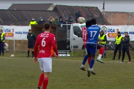 Doi fotbaliști din Liga 2 le-au dat mari emoții celor prezenți, după ce s-au lovit violent cap în cap, duel în urma căruia unul dintre jucători s-a resimțit puternic. Ambulanța și-a făcut de urgență apariția pe teren și medicii i-au acordat îngrijiri medicale lui Modibo Keita.
