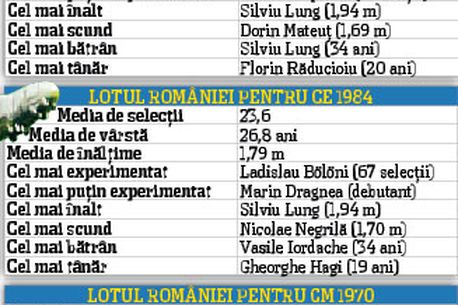 Tricolorii lui Piți stau foarte bine și la media de înălțime. Dacă la precedentele competiții, naționala a suferit la acest capitol, fiind mereu sub „pragul psihologic” de 1,80 m, acum, Pițurcă s-a adaptat cerințelor moderne și jucătorii convocați stabilesc cea mai ridicată medie de înălțime din ultimii 10 ani pentru un turneu final (1,81 m), „uriașul” lotului fiind stelistul Dorin Goian (1,94m).