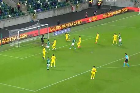 Irlanda de Nord a deschis scorul cu România prin golul lui Boyce, care a profitat de marcajul slab al lui Vali Crețu, dar și de eroarea arbitrului Scharer.