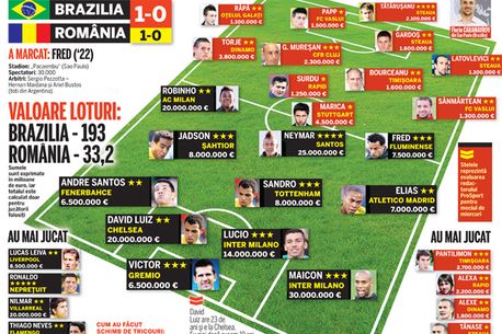 arătat în joc în repriza a doua, în timp ce vedetele „selecao” au