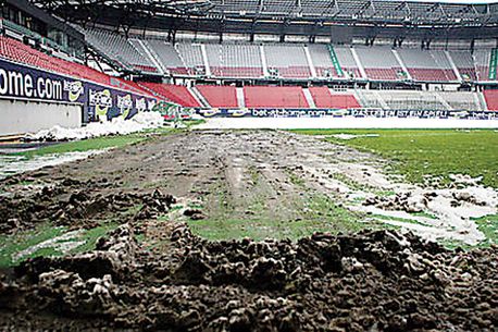 Gazdele ultimului Campionat European ne așteaptă la meciul de pe 1 aprilie cu o surpriză neplăcută: gazonul stadionului „Hypo-Arena” din Klagenfurt arată groaznic și nu există fonduri pentru schimbarea lui până la vară.