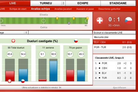 Eficiența lui Jankulovski și compania reiese și din media șuturile expediate la poarta celor doi goakeeperi, de 13 ori l-au încercat elvețienii pe Petr Cech, în timp ce doar 4 șuturi la poarta lui Benaglio au fost suficiente pentru ca cehii să obțină toate punctele puse în joc.