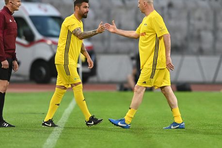 „Nu ne-am mai văzut de mult. Pe unii dintre ei i-am văzut acum un an, la Cluj, dar, în general, de mult timp. Pentru mine, e o plăcere, o onoare (n.r.- să joace din nou în fața unui stadion plin), sperăm să ne simțim bine. Tot timpul ți-e dor de mirosul ierbii, de public… Nu (n.r.- dacă mai este în fotbal). Nu mi-e dor, m-am obișnuit cu noua poziție.