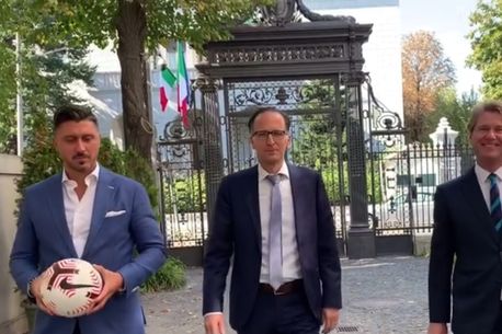 Cei trei au discutat pe marginea fotbaliștilor români care evoluează în străinătate, dar nu s-au ferit și să schimbe câteva pase, cu toate că erau îmbrăcați la patru ace. Ciprian Marica și Florin Răducioiu au arătat că fotbalul nu se uită și au lovit mingea foarte bine, pe când ambasadorul a fost un pas în spatele lor, dar s-a descurcat mai mult decât onorabil.