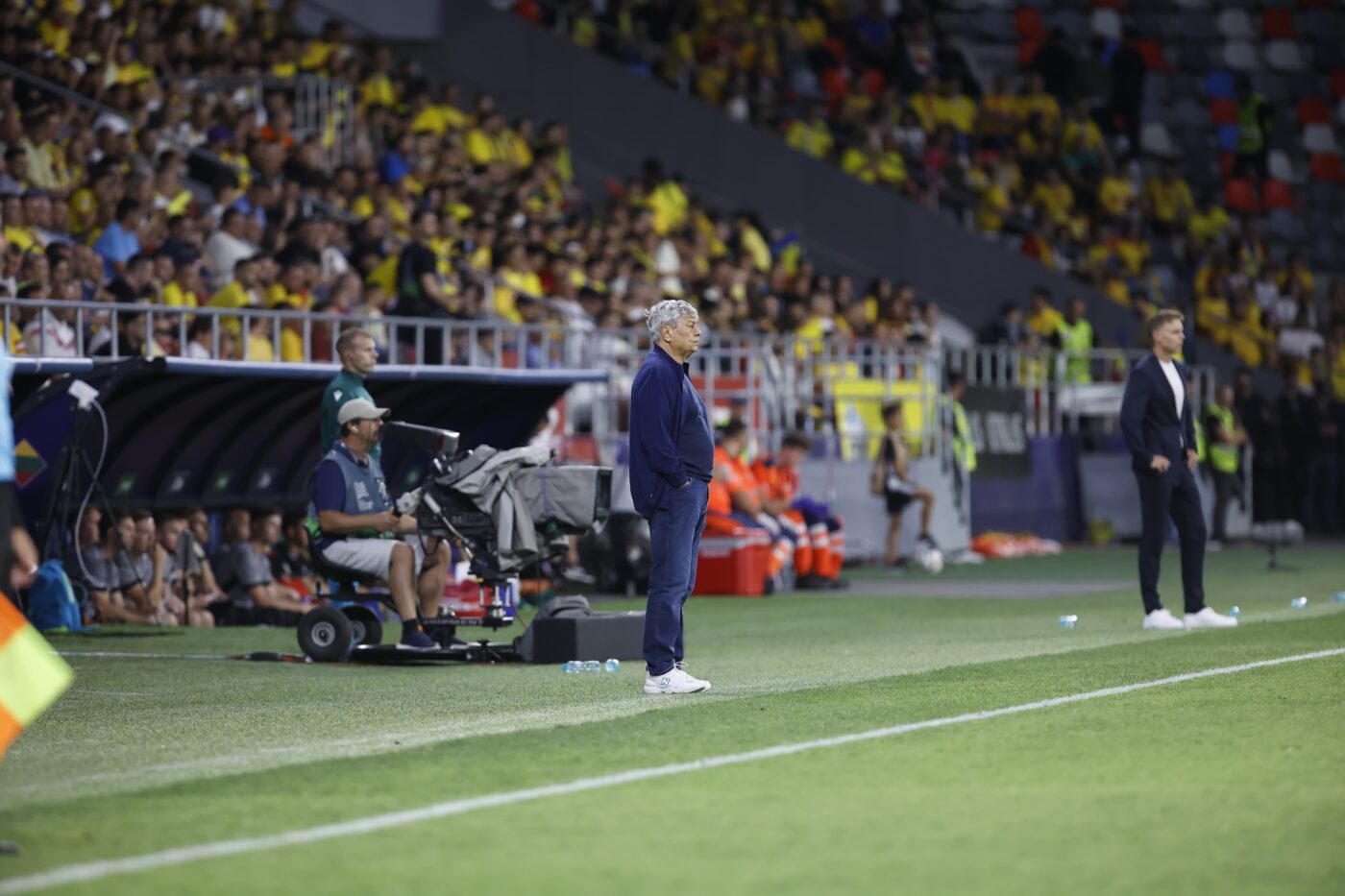 La marginea terenului, ca o stană, Lucescu pare că simte, cu experiența sa colosală, un funigel de teamă.