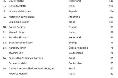 Alex Ferguson este liderul detașat al ultimului top dat publicității de cei de la IFFHS, peste rivalul Wenger, dar și peste Mourinho. Clasamentul celor mai performanți antrenori din ultimul deceniu îi are în primele zece locuri și pe Capello, Benitez, Ancelotti sau Hiddink.