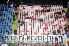 Chiar dacă senzația de amărăciune sufletească a dominat atmosfera, fanii nu l-au uitat pe Gigi Becali și i-au transmis o porție zdravănă de înjurături, urmate de clasicul „Pleacă din Ghencea”. Nici Mutu nu a fost uitat, deși nu era pe gazon, un banner vrând parcă să-l prevină că nu va fi niciodată adulat în Ghencea. „Respect pentru Mutu doar ca român”, a fost mesajul către el.