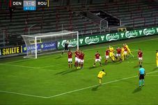 Minutul 3: Gol Danemarca! Olsen pătrunde în careu și îl învinge pe Aioani cu un șut în forță. Boboc, Dima, Băluță și Pașcanu i-au permis nordicului să intre în careu nestingherit și să deschidă scorul.
