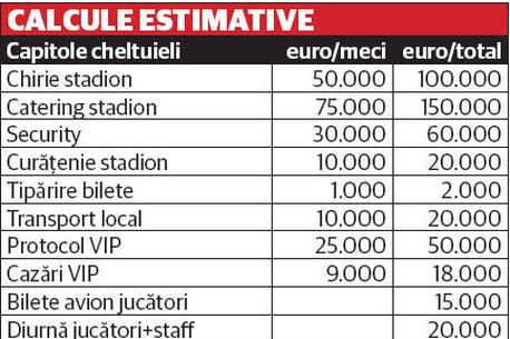 Concluzie. Chiar și exagerând cheltuielile, nu iese un total mai mare de 560 de mii de euro. FRF are însă propriile calcule. Să nu uităm că la Cupa Mondială din 1994, din SUA, devizul doar pentru rufele spălate s-a ridicat la câteva zeci de mii de dolari!