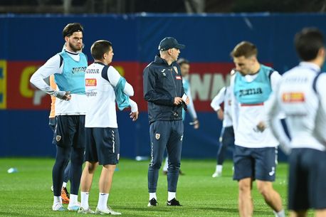 Mi-am însușit cerința Federației. Am citit azi pe toate site-urile, să nu fie nimeni critic… Susțin ideea că trebuie să plecăm cu trei puncte din Kosovo în seara asta. Nu cerem marea cu sarea. Nu cerem să batem Elveția de două ori. Cerem patru puncte cu aceste două echipe care sunt de nivel cu noi, să spun așa. Eh, suntem calificați în momentul ăla, locul 2 e al nostru în grupă și nu ai cum să mai pierzi calificarea la Campionatul European.