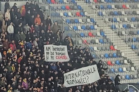 „Am întrebat 99 de români și pe Camora: Internaționala României?” și „Singura menire firească / O națională neaoșă românească”, au fost mesajele fanilor.