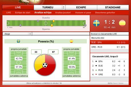 Spania a plecat ca mare favorită în întâlnirea cu Suedia de aseară și a obținut în final victoria, scor 2-1, dar statistica oferită de soft-ul site-ului Prosport.ro, Euro LIVE 2008, arată că succesul ibericilor a fost mult mai lejer decât lasă să se întrevadă tabela de marcaj.