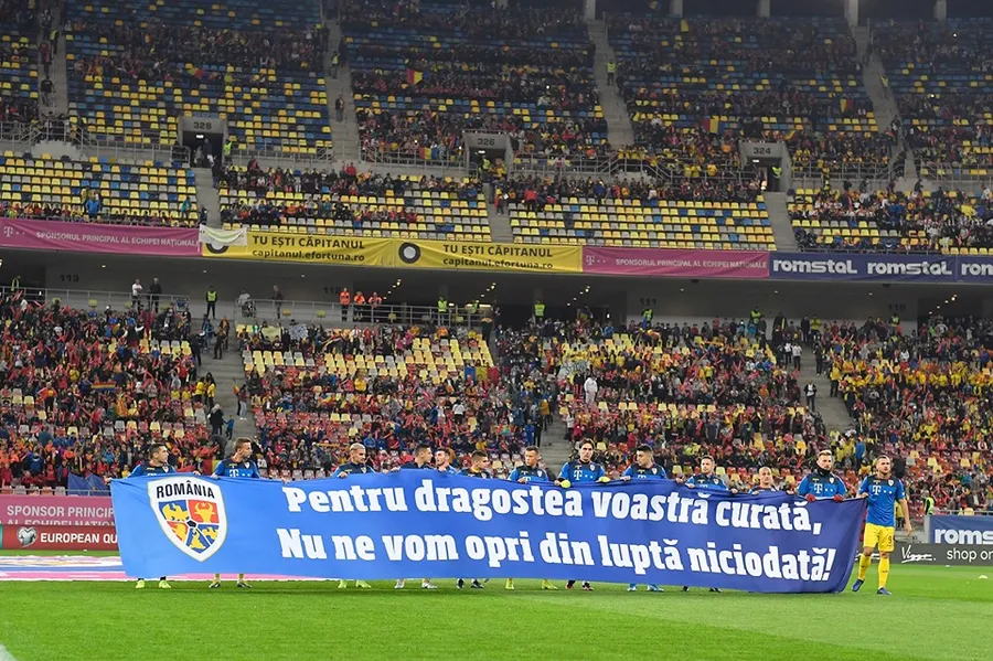 21:28 Tricolorii au ieșit la încălzire cu un banner special pentru micii suporteri veniți la meci! ”Pentru dragostea voastră curată, nu ne vom opri din luptă niciodată!”