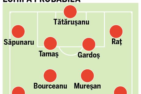 mijlocașilor centrali sunt dubii, acolo Mureșan, Alexa și Bourceanu