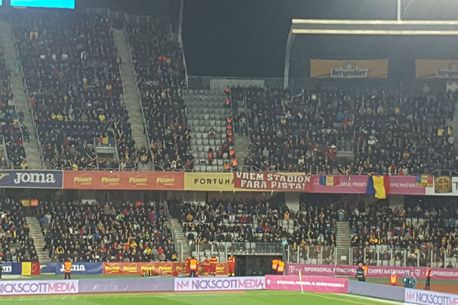 Fanii au susținut masiv naționala României, în meciul crucial cu Danemarca. Aproximativ 27.000 de oameni au cântat încă de la începutul meciului, iar galeriile au luat parte și ele la spectacolul de pe Cluj Arena.