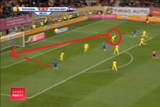 min. 47 – După ce Berghuis îl ridiculizează în bandă pe Ganea, mingea plecată din piciorul fotbalistuli olandez e deviată cu capul de Cosmin Moți până la Depay, cel care înscrie ușor. Este primul moment neinspirat al lui Moți, însă vina principală e purtată de Ganea.