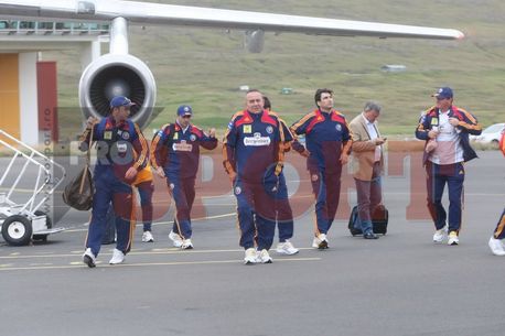 Delegația oficială a României a sosit în această seară, la ora 21:30, pe aeroportul din Torshavn, capitala statului Feroe, unde tricolorii vor fi cazați la Hotel Foroyar. În afara absenților din meciul cu Lituania, Adrian Mutu, Cristi Chivu, Răzvan Raț și Bănel Nicoliță, în Feroe nu au făcut deplasarea nici Daniel Niculae și Ciprina Marica, accidentați.