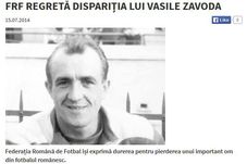 FRF a comis o gafă de proporții publicând pe site-ul oficial un mesaj de „La mulți ani” pentru Vasile Zavoda, care a încetat din viață pe 14 iulie 2014. Fostul mare fundaș dreapta al Stelei, în perioada în care aceasta purta denumirea de CCA, ar fi împlinit astăzi 85 de ani.