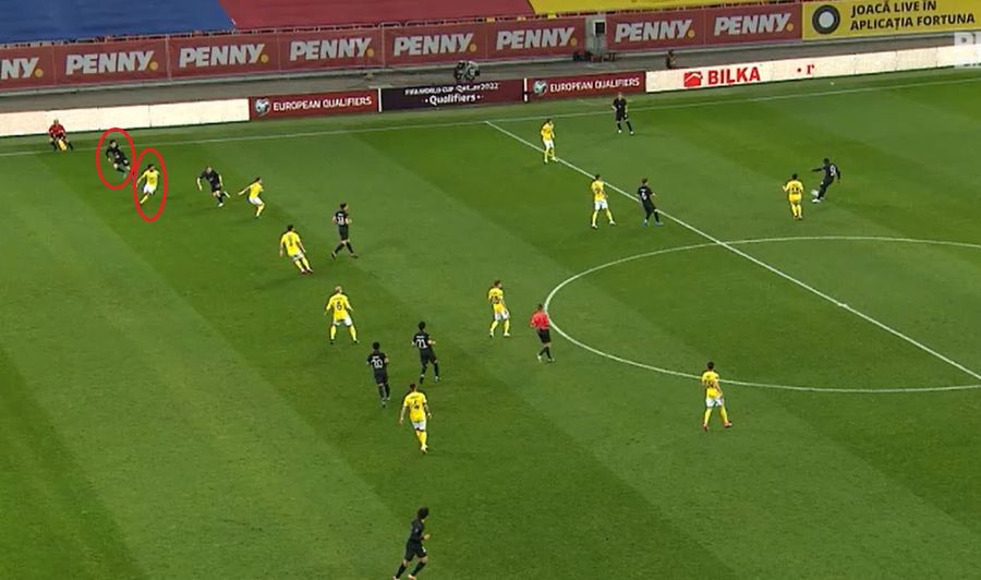 Gnabry a reușit să îl învingă pe portarul Niță, după ce a primit, din partea dreaptă, o pasă excelentă de la Havertz, obținută după o preluare făcută la limita offsideului. Fără VAR, arbitrii au lăsat faza să continue.