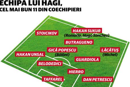 Hagi a ajuns la stadion exact când meciul românilor a început. Gică a privit de pe margine, cu ochi de profesor, cele 20 de minute ale jocului. S-a încruntat când ai noștri au încasat un gol, iar la final s-a destins. „Sunt copii, e bine că au ajuns aici”, a spus Hagi. Un reporter de la Sky Sports s-a apropiat de el pentru un scurt interviu. A acceptat propunerea, iar tema propusă l-a incitat: englezii l-au pus să alcătuiască un prim unsprezece al celor mai buni fotbaliști cu care a jucat. S-a gândit un pic și a dat formula. După care a răspuns întrebărilor ProSport.