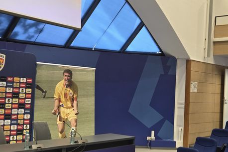 „Regele” vorbește în cadrul unei conferințe de presă de la Casa Fotbalului, sala „Nicolae Dobrin”, unde sunt prezenți jurnaliști, președintele FRF, Răzvan Burleanu, dar și directorul tehnic al Federației, Mihai Stoichiță.