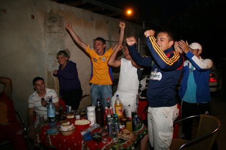 Când joacă echipa națională, curtea casei lui Cristi Tănase se însuflețește brusc. Toți se adună în jurul unei plasme ce contrastează cu aspectul modest al locuinței.