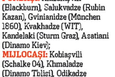 Delegația Georgiei, formată numai din jucătorii care evoluează în campionatul intern, a aterizat ieri-dimineață la București și s-a antrenat la Mogoșoaia. Stranierii se vor alătura lotului condus de Cuper în cursul zilei de astăzi.