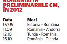 România pregătește startul unei noi campanii de calificare la un campionat mondial (Brazilia 2014) în locul în care a început declinul în 2001. Grupa cu Olanda, Turcia, Ungaria, Estonia și Andorra ar trebui să ne ducă, la finalul anului viitor, la un nou Mondial, după o pauză de 16 ani! Primul meci oficial din preliminarii e pe 7 septembrie, în deplasare, cu Estonia.