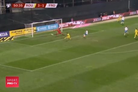 Hagi Jr. a părut că ajunge bine la minge și că va îndeplini o simplă formalitate pentru a duce scorul la 4-1 și a devenit al doilea membru al familiei care înscrie pentru România, dar nu a fost să fie. A reluat cu stângul, din prima, dar a făcut-o pe lângă bara din dreapta porții lui Nielsen. La câțiva centimetri de istorie, a fost consolat de Claudiu Keșeru, marcator, marți seară, al golurilor cu numărul nouă și zece în cariera la echipa națională.