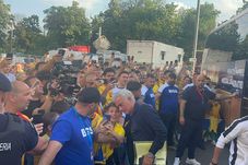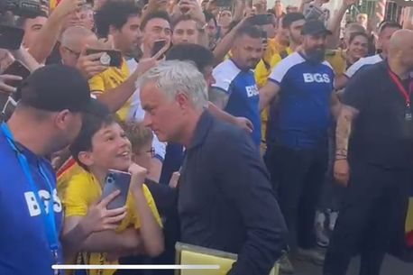 Primul care a coborât din autocar a fost Hristo Stoicikov, fostul mare atacant bulgar. Al doilea și-a făcut apariția Mourinho, aclamat de toți cei care erau în zonă. Tehnicianul portughez i-a salutat, după care s-a oprit pentru a face câteva fotografii. Un copil avea lacrimi de bucurie în ochi după ce s-a fotografiat cu reputatul tehnician portughez.