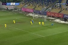 min. 38: Ocazie uriașă a lui Kashchuk. Găsit excelent cu o centrare din banda stângă și scăpat din marcaj de Neciu, ucraineanul Kashchuk șterge mingea, cu capul, de la 7 metri. Balonul s-a scurs pe lângă stâlpul din dreapta porții lui Vlad.