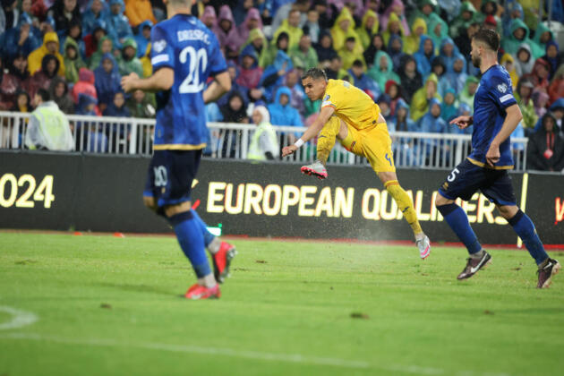 Intră Zhegrova, fotbalistul lui Lille, incomplet refăcut după accidentare. Noi intrăm ceva mai curajos. Șutul lui Man e deviat după o fază de pinball prin careul kosovar. Trec centrări prin fața lui Moldovan ca forțele NATO pe cerul Priștinei. Vojvoda driblează fantastic doi tricolori dar bine că trage pe Moldovan! Se joacă ceva mai deschis după 15 minute, dar nu cu mai multă calitate. Să vedem dacă ne priește. Până la urmă, pe puncte vorbind, disperarea e în casa lor.