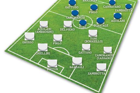 Donadoni a început în apărare cu Panucci dreapta și Zambrotta stânga, ambii urcând deseori și fiind adevărate extreme în multe momente. Fabio Cannavaro și Barzagli par a fi cuplul de centrali, interistul Materazzi urmând a se mulțumi cu statutul de rezervă. Mijlocul de trei a cuprins doi jucători de la AC Milan, Gattuso și Pirlo, însă grupul rossonero nu a fost spart cum credea toată lumea de Daniele De Rossi, ci de al treilea romanist pe lista valorică, Alberto Aquilani, care a justificat încrederea, făcând un joc bun, cu un mare travaliu și cu o bună colaborare cu VIP-ul Italiei din acest joc, Di Natale. De altminteri, golul al doilea al azzurrilor, autor Di Natale, a venit din pasa lui Aquilani, ce-i drept și pe fondul unei amnezii totale a lui Kompany. Camoranesi, Toni și Di Natale au alcătuit trioul ofensiv, care a respectat astfel așezarea tactică preconizată de Donadoni inclsuiv pentru Euro.
